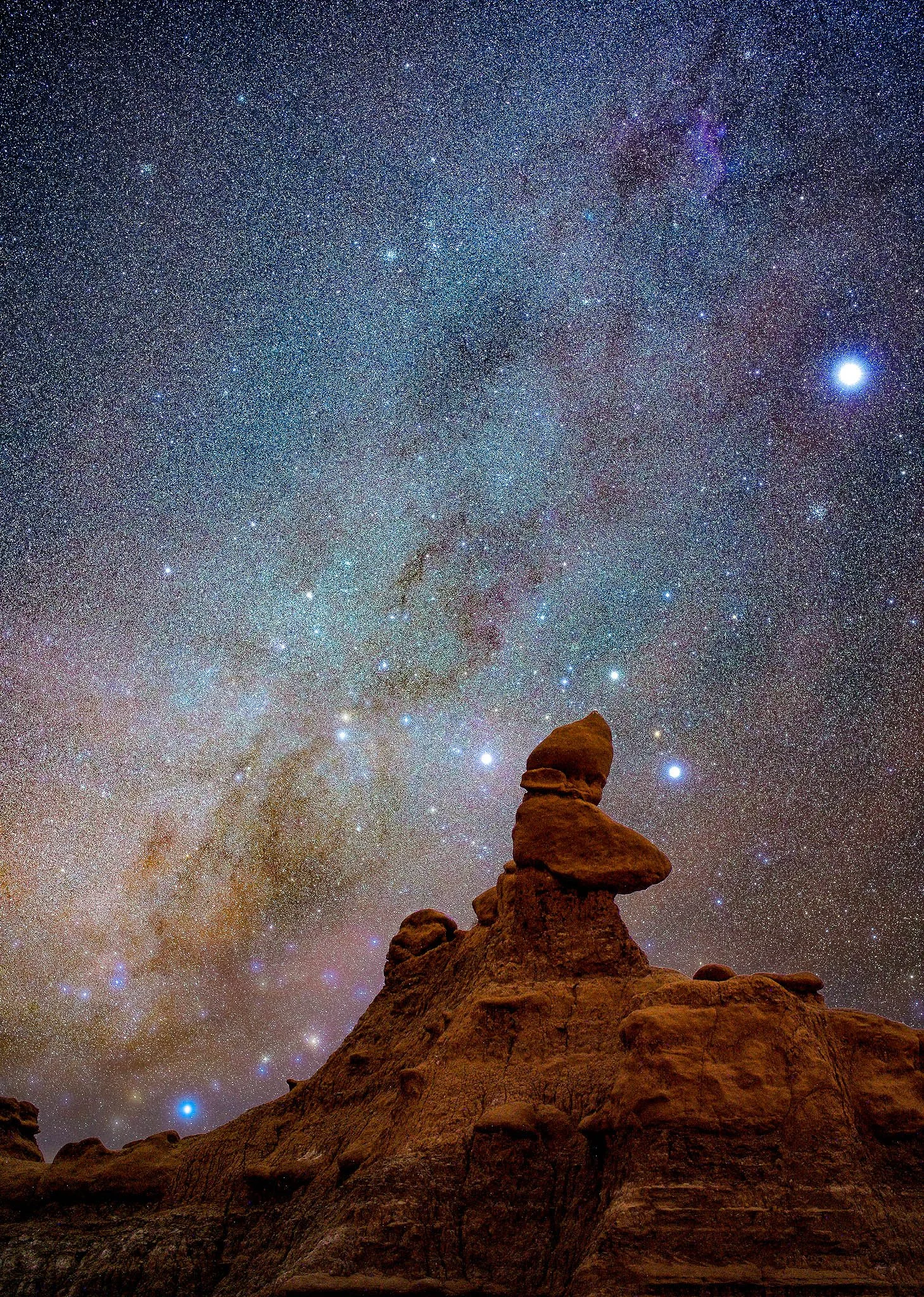 Goblin Valley State Park: Near Hanksville, Goblin Valley State Park showcases thousands of hoodoos - mushroom-shaped rock pinnacles formed through the differential erosion of sedimentary rocks. These unique formations are made of Entrada Sandstone, which dates back to the Jurassic period.